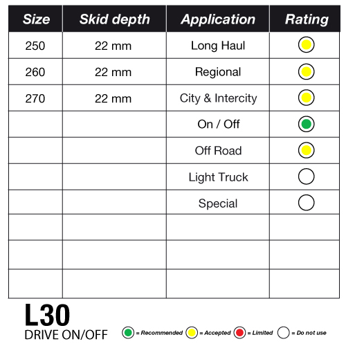 Heavy-duty drive tread for mixed regional and on/off-road applications. With deeper 22 mm skid depth, it delivers high traction and endurance where roads get tough.