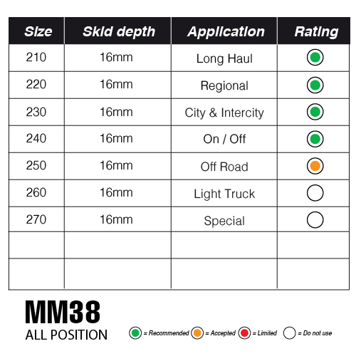 • An all position on/off tread product designed for drive and trailer wheel positions, for